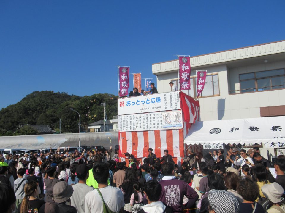 県外からも多くの観光客が訪れる人気の催し。会場では、その日水揚げされた新鮮な魚介類の販売をはじめ、わかしらす、しらす丼、和歌浦名産の天ぷら蒲鉾、干物などの露店が賑やかに並ぶ。またよさこい踊りやダンス、フリーマーケット、餅まきなどのイベントも実施される。大人も子どももお祭り気分で地元の味を堪能しよう♪