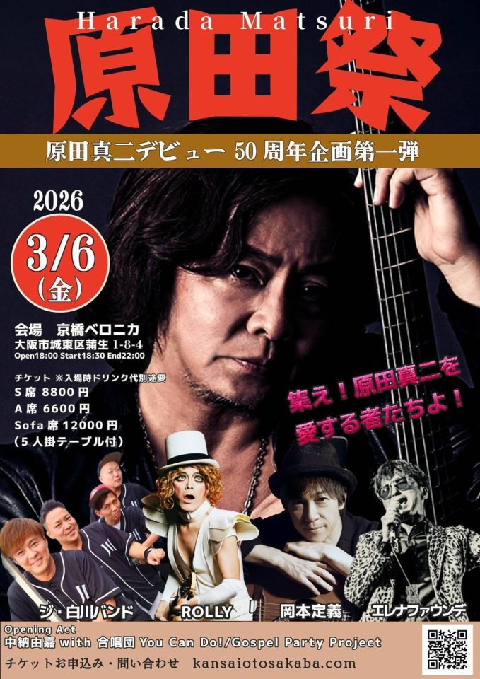 「てぃーんず ぶるーす」「キャンディ」「タイムトラベル」などの楽曲で知られるアーティスト・原田真二のデビュー50周年記念企画がついに始動! その第1弾となる『原田祭』が京橋ベロニカにて3月6日(金)に開催。原田を慕う4組のミュージシャンが原田の楽曲をカバーし、一夜限りのコラボも! そして長年のファンも生で聴いたことがないであろう曲も登場するというスペシャルな一夜。チケットは完売間近とのことなので、お早めに!
